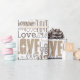 Palabras de tipografía de amor en diferentes tipos de letra, tonos beige dorado diseño moderno en fondo blanco, para el día de San Valentín, cumpleaños, dulces 16, adolescente, ducha de novia, nacimiento del bebé, regalos de despedida de soltera