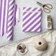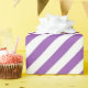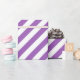 Diagonal purple and white stripes create a bold, patterned background. The alternating colors convey a lively and energetic tone.
