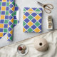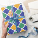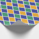 Diseño de patrones de diamante en naranja, verde, azul y blanco.