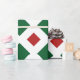 Papel De Regalo Diamante verde, negrita frontera blanca en rojo