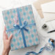 Este clásico papel de envolvimiento presenta un elegante patrón de argyle con diamantes en tonos de plata y azul.