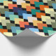 Este papel de envoltura tiene un diseño geométrico de diamantes de color claro que se superponen en un campo de negro.