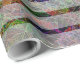 Extraña imagen de pequeños cuadrados inclinados y abstractos con diseño de rayas y arañazos y líneas coloridas.