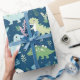 El encantador diseño de un colorido patrón de dinosaurios bebé ambientado en un fondo azul
