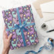 ¡Este papel de envoltura ruidoso es perfecto para cualquier aficionado a los dinosaurios! Con ilustraciones lúdicos de simpáticos dinosaurios y cactus florecientes sobre un fondo morado, este diseño seguramente hará sonreír a cualquier destinatario.