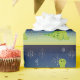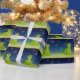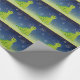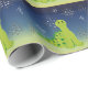 Un divertido diseño vacacional con bonitos dinosaurios verdes con colas largas en una noche nevada con muchos copos de nieve cayendo. Envuelva sus regalos en este envoltorio de dinosaurios de invierno.