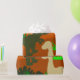 Este papel de envoltura tiene un diseño de novedad de dinosaurios en una atmósfera de plantas y viñas.