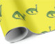 Papel De Regalo Dinosaurios verdes en patrón amarillo