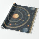 Un fascinante diagrama celeste con un gran planeta tipo Júpiter en el centro, rodeado de planetas y cuerpos cósmicos en órbitas concéntricas precisas. Envuelto en un fondo estelar profundo con una cuadrícula detallada y marcas numéricas, este papel de envoltura inspirado en la astronomía es perfecto para los entusiastas del espacio, los espectadores y los amantes de la ciencia planetaria. Un regalo ideal para eventos celestes, solsticios y aquellos fascinados por los misterios del cosmos.
