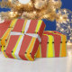 ¡Este papel de envoltura sería divertido y brillante para cualquier ocasión! Su diseño es de triángulos rojos y amarillos y de diamantes, luminosos y alegres.