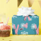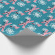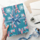 Vibrante fondo azul con esquís rosados, gorra y google. Rodeado de hermosos copos de nieve blancos. Perfecto para el invierno o la temporada de Navidades.