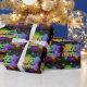 Este divertido y colorido diseño temático de Navidades presenta el mensaje "¡FELIZ NAVIDAD!" con un patrón de gradiente de espectro inspirado en el arcoiris. También cuenta con un diseño inspirado en fuegos artificiales vibrantes y multicolores. Envolver papel como este podría ser una manera divertida de envolver un regalo de Navidad que se le está dando a un amigo o pariente.