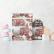 divertida Santa con Navidades de vagones y camiones envolviendo papel