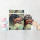 Un ligero efecto personalizado en esta imagen de un perro Doberman Pinscher con orejas cortadas contra un esquema de color de fondo verde carpintero. ¡Perfecto para el amante de los perros Dobie!