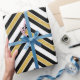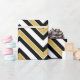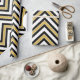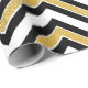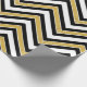 Un papel de regalo diseñado con un elegante patrón de chevron dorado, blanco y negro para cualquier tipo de regalo ocasional