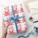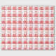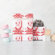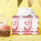 Ilustracion rojo y blanco de un chef turco frente a un asador de carne. Él tiene grandes cuchillos tradicionales. Una tienda de kabab para donantes