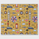 Patrón caprichoso presenta grandes garabatos coloridos del Big Ben, guardias de palacio, tazas de té y otras representaciones de la vida londinense