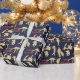 Imágenes de silueta dorada de golfistas en varias posiciones le dan un bonito patrón en este papel de envolver de regalo de cumpleaños. Junto con las imágenes de los golfistas hay un carrito de golf, y tu texto personalizado en naranja rojo. Actualmente el texto dice FELIZ CUMPLEAÑOS, pero puede cambiarlo o agregarlo, si lo desea. Las imágenes y el texto se colocan en un fondo azul oscuro. *Gracias a ChiliPapers por las imágenes de silueta en este diseño.