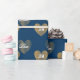 Papel De Regalo Dos corazones dorados personalizados, azul prusian