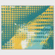 Esta obra de arte muestra un patrón vibrante y enérgico de puntos y pinceles dinámicos, creando un efecto visual sorprendente. La composición presenta una paleta de colores en negrita de color verde azulado, amarillo y blanco, con los puntos que varían en tamaño y densidad para formar olas y gradientes a través del lienzo. La interacción entre los puntos lisos, redondeados y las bruscas y amplias pinceladas añade un sentido de movimiento y ritmo a la pieza, evocando una estética retro inspirada en el arte pop. El diseño es a la vez lúdico y audaz, con un sentido de abstracción moderna.