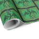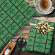 Dragón negro tribal con nudos celtas trabajando alas. Los matices de nudos verdes y celtas funcionan detrás y alrededor del dragón y del trébol de cuatro hojas