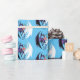 Un dragón morado y un dragón blanco en el aire con un corazón rosa celta y rojo entre ellos en un fondo azul.