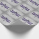 Envolver regalos para la novia y el novio con un rollo de papel envuelto Boda de la libélula de yeso. El diseño de papel envuelto presenta una libélula con guijarros en vigas sobre un fondo vintage a rayas angustiadas. También hay artículos de papelería y regalos adicionales para bodas disponibles con este diseño.