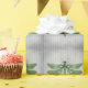 Envolver regalos para la novia y el novio con un rollo de papel envuelto Boda de la libélula de yeso. El diseño de papel envuelto presenta una libélula con guijarros en vigas sobre un fondo vintage a rayas angustiadas. También hay artículos de papelería y regalos adicionales para bodas disponibles con este diseño.
