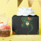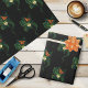 Una hembra seca con hermosas hojas verdes en un fondo negro con una gran mariposa naranja
