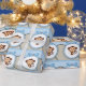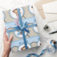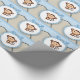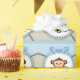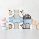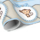 Adorable papel de regalo de baby shower de mono marrón y azul bebé.