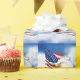 La imagen de la cabeza orgullosa de un águila se sobrepone sobre la bandera americana que agita en el cielo. Este diseño patriótico es una imagen inspiradora para todos los los que amen los E.E.U.U. y sus símbolos de la libertad.