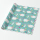 A Teal Wrapping Paper Designed With White Lambs, Rabbits For Easter Gifts