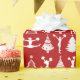 ¡Papel de embalaje temático del navidad el animar o del pom de la diversión con un fondo rojo festivo y árboles de navidad y siluetas de alternancia de la alegría/del pom! ¡Ríase los días de fiesta más para su animadora o chica del pom!