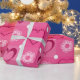 Papel de envoltura rosa para El día de San Valentín con formas de corazón y flor