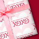 Elevar los regalos de su El día de San Valentín con papel de envoltura personalizado. El diseño presenta un bonito diseño XOXO junto con los corazones en una paleta roja, rosa y blanca. Personalice la plantilla con su mensaje personalizado. © Kimbellished, LLC