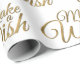 Este lindo envoltorio de regalo es perfecto para cumpleaños. El papel de envolvimiento de cumpleaños Gold Make a Wish tiene letras de oro en un fondo blanco.