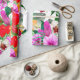 Captura la belleza vibrante de la naturaleza con nuestro papel de envoltura floral costero. Este diseño presenta una deliciosa mezcla de orquídeas, lirios, hojas tropicales y bromelias, creada por Jo Story de Sketchbook Designs. Perfecto para añadir un toque de elegancia a tus regalos.