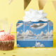 Ratón lindo durmiendo sobre una pluma blanca flotando en un cielo de verano
