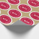 Este papel de envolver de regalo para Navidades festivos ofrece un diseño festivo en rojo, oro y blanco. El texto redondo dice "ten una muy feliz Navidad" y se acentúa con un gráfico de hojas huecas en un círculo rojo. El fondo es dorado y se puede cambiar a cualquier otro color eligiendo personalizar.