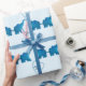Dos elefantes azules dulces que soplan el papel de embalaje de los corazones.