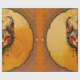Elegancia ornamental: un retrato de un gato. Los ojos rojos expresivos inmediatamente atraen la atención. La frente del gato está decorada con un patrón delicado y ornamental que recuerda a líneas delicadas y curvadas y motivos florales, dando a la imagen un toque elegante. La paleta de colores es predominantemente cálida, con tonos naranjas y dorados brillantes que irradian calidez y vitalidad.