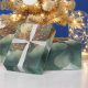A gorgeous minimalist emerald and gold color wedding wrapping paper, done in one huge image of an emerald and Gold Poppy.