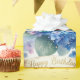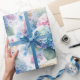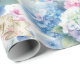 Present your birthday gifts with this elegantly designed floral wrapping paper. The artwork showcases a watercolor-illustrated image of pastel blue and pink hydrangea blooms, accented with a gold "Happy Birthday" banner and subtle sparkle details. This paper is also suitable for party decorations and various craft projects.