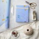 blue music wrapping paper, colorful notes wrap, musician gift wrap, recital wrapping paper, music teacher gift, bright blue gift wrap, artistic wrapping paper, music lover gift wrap, gold notes pattern, modern music note wrapping.