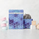 Living in Buffalo, N.Y., I know snow! I created these snowflakes thinking of how it feels at twilight walking around the park when snow is gently falling and the lanterns are beginning to glow. I added some poetry -- the paper has, swirling among the snowflakes, the beautiful words by Christina Rossetti: "Snow had fallen, snow on snow, snow on snow. In the bleak midwinter, long ago." This wrapping paper is all various calming shades of blue, from indigo to a soft baby blue, for a feeling of peace and tranquility.