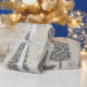 Wrap your holiday gifts in style with this elegant monochromatic Christmas wrapping paper. Featuring a sophisticated pattern of detailed pine trees, palm trees, and snowflakes in shades of grey and cream. Perfect for a chic, modern, or rustic holiday aesthetic. Pair it with a vibrant blue ribbon for a beautiful finishing touch. Ideal for Christmas, winter birthdays, or any special occasion needing a touch of refined artistry.
