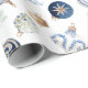 Envuelve tus regalos con elegancia intemporal. Este hermoso papel de envoltura acuarela presenta un sofisticado patrón de adornos navideños, campanas y estrellas en el rico azul marino y oro suave. Ideal para unas vacaciones de lujo.