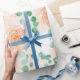 Papel De Regalo Elegante acuarela Peach Floral Verde Eucalipto