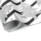 Hermoso diseño de Navidades. Patrón de árbol de Navidad falso purpurina de plata, franja blanca y negra.