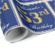 Este sencillo y elegante diseño de papel de envoltura presenta un mensaje personalizado como "53º cumpleaños de Alexander" (el "53º" tiene un aspecto de color falso/imitación dorado) dentro de un área cuadrada de color azul con un simple contorno fronterizo. El nombre se encuentra en un texto elegante de color blanco tipo script, y se puede personalizar. El envolvimiento de papel como este podría ser usado para envolver regalos de cumpleaños para alguien que está celebrando su cincuenta tercer cumpleaños. [~Z0000221]